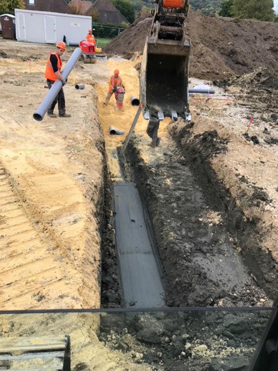 Grâce à leurs engins mécaniques, Poisson Terrassement et son équipe préparent les terrains